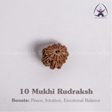 The Ten Mukhi Rudraksha symbolizes Lord Vishnu, the preserver of the universe. Just like Vishnu, it acts as a balancer of emotions, helping regulate your inner state. This bead is believed to provide divine protection and harmony, shielding you from negativity. It balances energies around you and fosters a calm mind. It also enhances intuition and spiritual vision, making it a powerful tool for overall well-being.