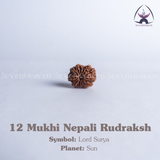 The Twelve Mukhi Nepali Rudraksha represents Lord Surya, the sun god. Known for its larger size, deep grooves, and strong vibrations, the Nepali Rudraksha is highly valued for its spiritual and material benefits. It is believed to bring energy, good health, and confidence. Wearing this bead can improve focus, memory, and help with better decision-making. It balances physical and mental energy, making it helpful for both students and professionals. This Rudraksha is seen as a source of positivity, boosting vitality and creating opportunities for success and prosperity.