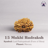The Fifteen Mukhi Rudraksha is associated with Lord Pashupatinath, a compassionate form of Lord Shiva. It is connected to the Heart Chakra and is deeply linked to eternal love, emotional energy, and forgiveness. This bead helps attract happiness, remove emotional barriers, and deepen inner peace.