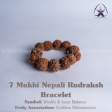 The 7 Mukhi Nepali Rudraksha is a sacred seed revered for its deep connection with the Goddess Mahalakshmi—the deity of wealth, prosperity, and abundance. This bracelet is not just spiritual jewelry; it's a wearable form of divine blessing. Known for its powerful energies, the 7 Mukhi Rudraksha is believed to remove miseries, attract financial stability, and bring peace of mind.