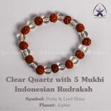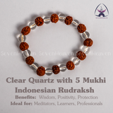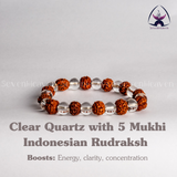 The combination of clear quartz and a five mukhi Indonesian Rudraksha blends the powerful energies and clarity-enhancing properties of quartz with the balancing and protective energies of the Rudraksha.