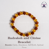 This bracelet brings together the grounding energy of Rudraksh with the warm abundance of Citrine—creating a powerful blend of spiritual strength and material prosperity. Rudraksh beads, revered in ancient tradition, are known to calm the mind, deepen focus, and protect the wearer from negativity. Citrine, on the other hand, is a stone of sunshine, success, and self-worth. Together, they support you in staying rooted in your truth while opening the doors to joy, growth, and abundance.