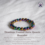 Titanium Aura Quartz Bracelet is more than just a visual stunner. Infused with high-vibrational energy, this bracelet is known to release negativity, emotional baggage, and mental fog. It works quietly yet powerfully, helping you deal with inner wounds, dissolve stress, and regain emotional strength. Its vibrant metallic sheen symbolizes transformation—a visual reminder that you’re stepping into your power.