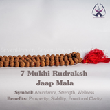 Made from authentic 7 Mukhi Rudraksha beads, this Jaap Mala is known for its powerful spiritual and material benefits. Each bead holds the energy of Goddess Mahalakshmi, the goddess of wealth and prosperity, and is revered for bringing abundance, inner strength, and emotional balance.
