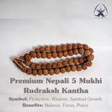 The 5 Mukhi Rudraksha Kantha with 33 beads is a sacred and powerful spiritual tool, offering deep protection and wisdom. Sourced from the highlands of Nepal, this premium-quality Rudraksha is a symbol of divine connection and is widely regarded for its extraordinary wellness properties. The five faces (mukhi) represent the five elements of the universe: Earth, Water, Fire, Air, and Ether, and it’s believed that wearing this Kantha helps balance these energies in the body, bringing tranquility, focus, and spiritual growth.