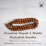- Wear the Kantha around your neck for continuous connection to the powerful energy of the Rudraksha beads.