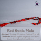 The Red Gunja Mala is made from the rare red seeds of the Gunja plant, traditionally used in spiritual practices across India. These seeds are especially associated with Lord Krishna and Devi energy, symbolizing pure devotion, spiritual courage, and divine protection.