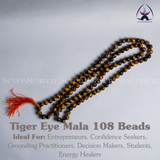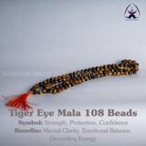 The Tiger Eye Mala is a powerful garland made from natural Tiger Eye stones. It is well known for it's grounding energy, protection, and courage-enhancing qualities. This stone has been cherished for centuries as a symbol of strength, focus, and resilience. It also inspires clarity and confidence during tough times.