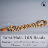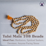 The Tulsi Mala is a sacred garland made from the holy Tulsi plant, which is very important in Hinduism. It is loved for its spiritual purity and powers. People often connect it with Lord Krishna and Lord Vishnu. Wearing or using a Tulsi Mala while praying or chanting helps clear your energy and brings blessings from the divine.