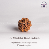 The Five Mukhi Rudraksha represents Lord Kalagni Rudra, an avatar of Rudra (Shankar). This avatar is known for its protective and energy. Just like him, this bead is believed to shield against negative energies, improve health, and bring peace of mind. Linked to Jupiter, it balances the five elements in the body and purifies energy.