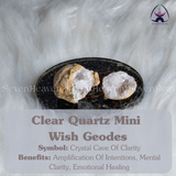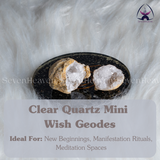 Clear quartz mini wish geodes may look small, but they hold the powerful vibration of clear quartz. It is also known as the Master Healer. Inside each geode is a naturally formed unpolished stone cave, believed to hold and amplify your wishes, intentions, and energy.