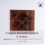 The Copper Swastik Yantra is a sacred symbol of positivity, protection, and prosperity, carefully etched into pure copper—a metal revered in spiritual traditions for its high conductivity of both energy and intention. This yantra, available in 3-inch and 4-inch sizes, is ideal for placement at entry points, temples, or sacred corners of your home or office, where it works silently to fortify the energy around it.