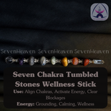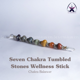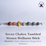 "The Seven Chakra Tumbled unpolished stone Wellness Stick is a specially designed energy tool that features seven tumbled unpolished stones, each representing one of the seven main chakras of the body. These unpolished stones are carefully selected for their wellness properties and are tumbled to a smooth finish, making them ideal for use in energy correction, meditation, and chakra balancing practices. The stick helps align, activate, and balance the chakras while promoting physical, emotional, and spiritual energy.