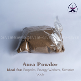Aura Powder is a sacred blend of natural, high-vibrational herbs and minerals created to purify, uplift, and strengthen your personal energy field. This handcrafted powder is infused with protective intentions and is traditionally used to cleanse auras, remove negative energy, and bring about a sense of clarity, calm, and renewal.