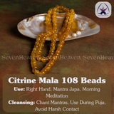 The Citrine Mala is also known as the Stone of Success and Abundance. Made from bright yellow citrine beads, this mala carries joyful, uplifting energy that helps attract positivity, wealth, and confidence. It’s ideal for anyone looking to boost their motivation, creativity, and attract success in life.