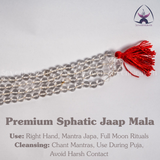 The Clear Quartz, also known as Sphatik in Sanskrit, is revered as a stone of purity, clarity, and divine energy. This jaap mala, strung with hand-polished, natural Sphatik beads, holds a cooling, calming vibration that helps align the mind and heart during spiritual practices.